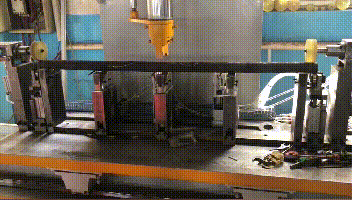 伺服電機(jī)帶動(dòng)工件轉(zhuǎn)動(dòng),右側(cè)電腦屏幕顯示工件形變情況。多個(gè)傳動(dòng)器同時(shí)檢測,機(jī)器自動(dòng)找到最高點(diǎn),移動(dòng)工作臺(tái)自動(dòng)移至對(duì)應(yīng)彎曲點(diǎn)